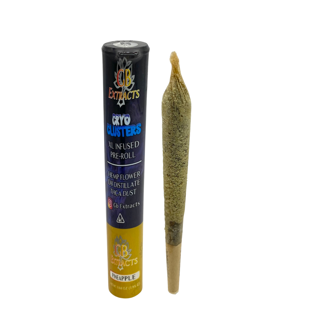 Experience a tropical twist with our THC-A Pineapple Cryo Clusters Pre Rolls – 2G of premium potency. Infused with Delta-8 distillate and coated in pure THC-A diamond dust, each pre-roll delivers a smooth, flavorful hit with bold pineapple notes and powerful effects. Crafted for connoisseurs who crave taste and strength, this potent blend offers a euphoric high and relaxing finish. Perfect for unwinding or lighting up the vibe—this is not your average pre-roll.